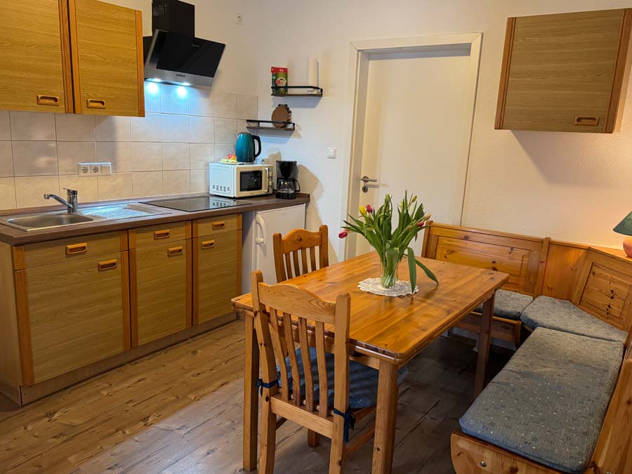 - Küche mit Backofen, Wassekocher und Kaffeemaschine