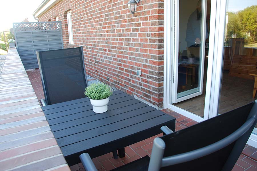 Die maritime Wohnung mit dem Namen "Ebbe" ist für 2 Personen, mit 55m² Wohnfläche und einer 20m² großen Sonnenterrasse mit wunderbarem Blick auf den Deich von Dornumersiel.